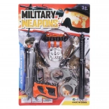 - Pistol, 3 gloanțe, toc pentru gloanțe, baston, cătușe, cască cu microfon