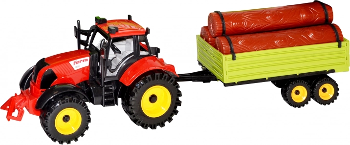 Tractorul cu remorcă și bușteni este jucăria ideală pentru micii fermieri și pădurari. Datorită aspectului realist, culorilor vii și execuției din plastic rezistent, copiii își vor pune ușor imaginația la lucru și își vor crea propria lume a aventurilor agricole. Setul include o remorcă încărcată cu „bușteni” care pot fi transportați, încărcați și descărcați.
