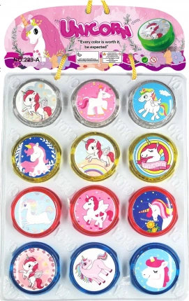 Yo-yo distractiv cu motiv de unicorn oferă efecte luminoase la fiecare rotire. Ideal pentru copii de la 3 ani, diametru 5,5 cm, baterii 2x AG3 incluse.