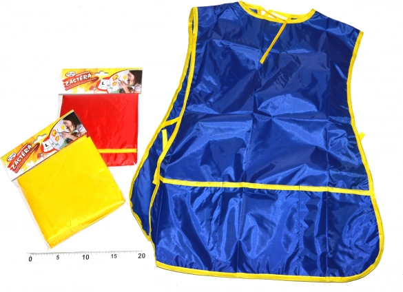 Șorț reversibil practic pentru copii, pentru educație artistică, cu dimensiunile 55 × 40 cm. Datorită legării în talie stă excelent pe corp, are 3 buzunărașe funcționale în față și protejează fiabil hainele de vopsele și murdărie. Fără tricouri sau pantaloni pătați în timpul pictatului celor mici.