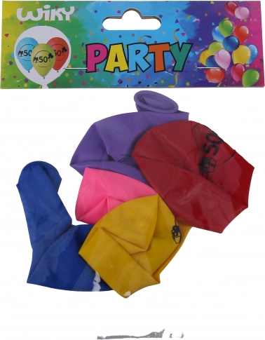 Baloane gonflabile stilate, în mix de culori, cu diametrul de 30 cm și cu numărul 50 evidențiat, completează perfect decorul. Setul de 5 bucăți este ideal pentru aniversări și jubileuri de 50 de ani și se combină ușor cu alte decorațiuni.