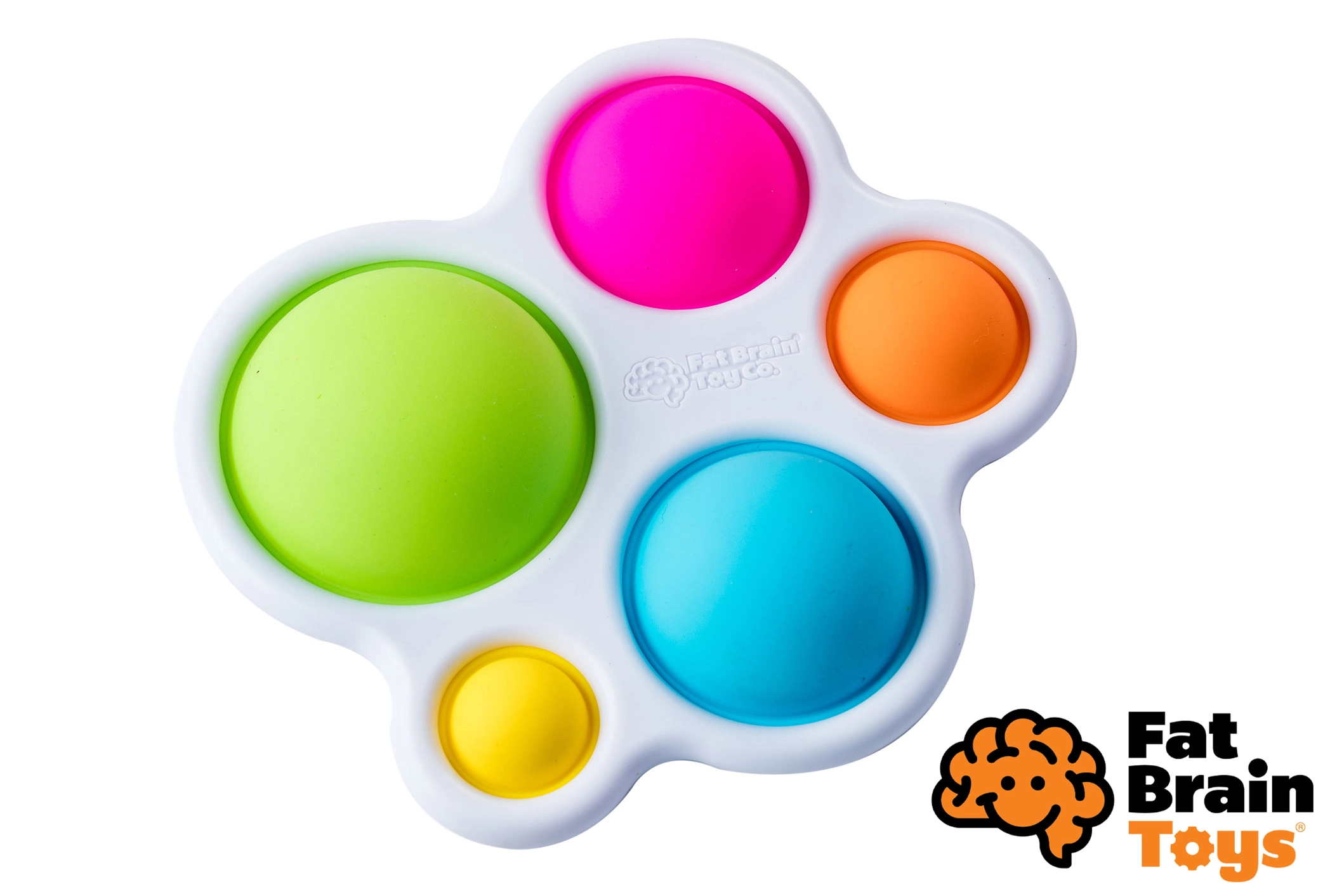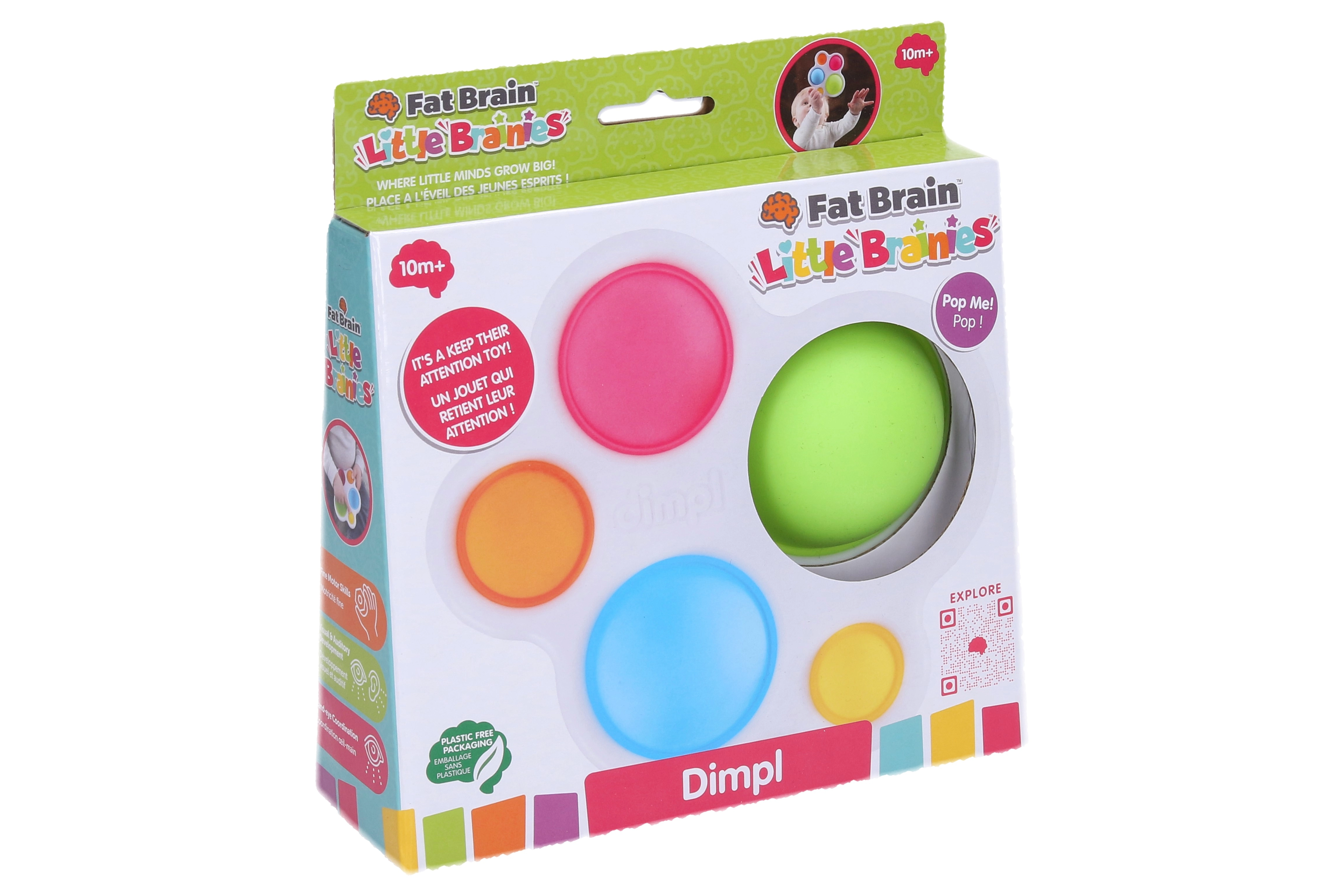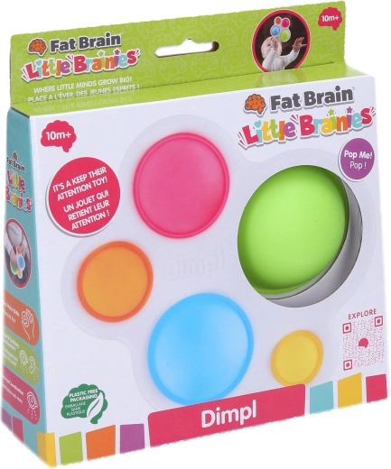 Dimpl de la FAT BRAIN este o jucărie senzorială compactă cu cinci bule din silicon colorate într-un cadru din plastic robust. Fiecare bulă poate fi apăsată și „pocnită” de pe ambele părți, captând imediat atenția copiilor și motivându-i să descopere din nou și din nou.