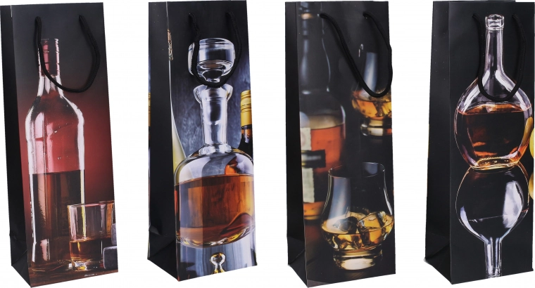 Geantă elegantă pentru cadou pentru sticlă, mărime medie, ideală pentru utilizare pe parcursul întregului an. Oferă un aspect elegant cu posibilitatea de a alege din 4 modele diferite.