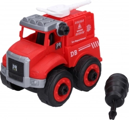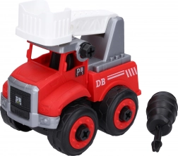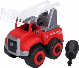 Construiește-ți propriul vehicul de intervenție! Această mașină de pompieri cu șuruburi dezvoltă motricitatea fină, gândirea logică și răbdarea. Copilul își asamblează singur mașina cu ajutorul șurubelniței incluse, apoi pornește la acțiune datorită roților care se învârt liber.