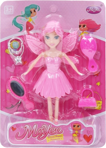 Păpușă Zână cu Accesorii este o jucărie magică care încântă orice copil. Disponibilă în trei culori fermecătoare - albastru, roz și mov.