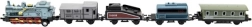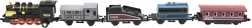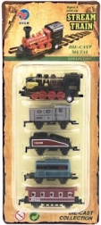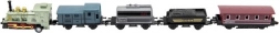 Setul de trenulețe cu locomotivă și patru vagoane îi va bucura pe toți iubitorii de cale ferată. Datorită combinației de componente metalice și plastice, modelele arată realist și rezistă jocului entuziast al copiilor. Fiecare piesă are lungimea compactă de 8 cm, încadrându-se ușor în mână și pe traseele de acasă.