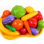 Setul de fructe și legume din plastic oferă o oportunitate excelentă pentru copii să învețe să recunoască diferite tipuri de alimente. Setul conține imitații de fructe și legume pe o tavă solidă galbenă. Susține dezvoltarea cognitivă și ajută copiii să înțeleagă bazele unei alimentații sănătoase.