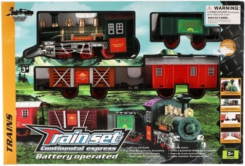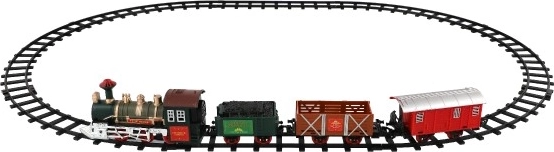 Pachetul conține 8 bucăți de șine, permițând crearea unui circuit de 107 cm. Traseul este format din 6 curbe și 2 șine drepte. Pentru funcționare sunt necesare 2 x baterii AA pentru locomotivă (nu sunt incluse în pachet).