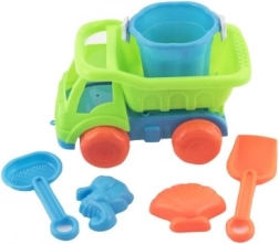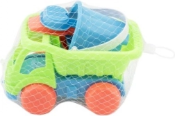 Include mașinuță, găletușă, lopățică mini, greblă mini și forme pentru o experiență completă de joc.