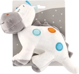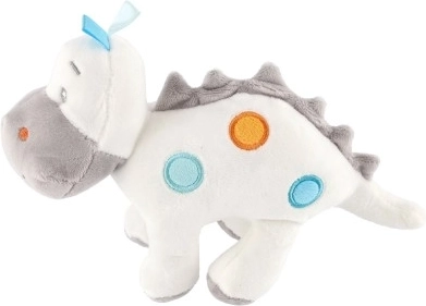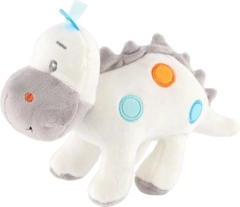 Acest dinozaur de pluș nu doar că servește ca tovarăș de joacă, dar este și o decorație minunată care înfrumusețează orice tărâm al copiilor. Este realizat din material fin și moale, ceea ce îl face un prieten ideal pentru copii de toate vârstele. Petele colorate strălucitoare în combinație de nuanțe de alb și gri conferă dinozaurului un aspect unic.