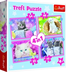 Puzzle pentru copii 4în1 cu pisicuțe vesele oferă patru puzzle-uri separate pentru micii iubitori de pisici. Fiecare imagine are dimensiunea de 285 × 205 mm și un număr diferit de piese (35, 48, 54, 70), astfel încât se vor bucura atât copiii mai mici, cât și cei mai mari. Fabricat în Polonia din materiale ecologice, recomandat de la 4 ani.