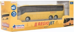 Acest autobuz REGIOJET din metal, realizat cu atenție la detalii, îi va încânta pe toți pasionații de transport. Construcția robustă din metal cu elemente din plastic asigură durabilitatea, în timp ce detaliile realiste și culoarea galbenă caracteristică oferă o experiență autentică atât în joacă, cât și la expunere în colecție.