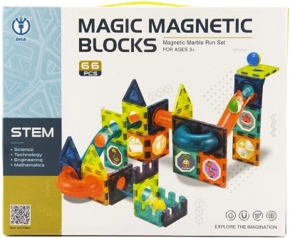 Acest set de construcție magnetic, plin de culoare, oferă nenumărate posibilități de a crea structuri originale și piste pentru bile. Conexiunile magnetice solide asigură stabilitatea, astfel încât copiii se pot concentra pe construcție creativă și pe experimente cu formele și gravitația.