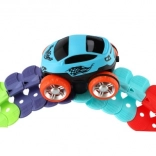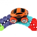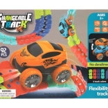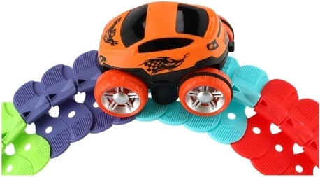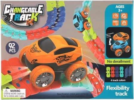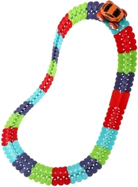 Pista de curse este compusă din piese colorate, interconectabile, care permit îndoirea pistei în diverse forme.