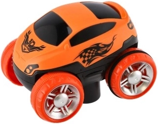 Mașinuța inclusă în pachet luminează și cabina sa poate fi ușor schimbată între portocaliu și albastru, adăugând distracție.