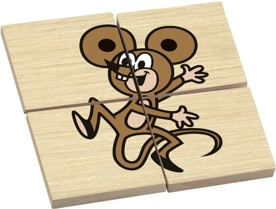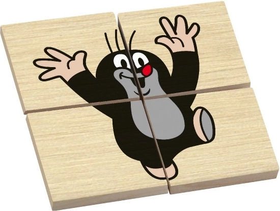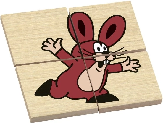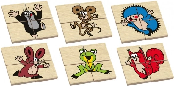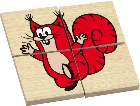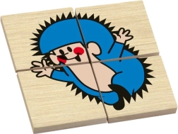 KRTEK, șoarece, arici, iepure, broască și veveriță pe puzzle-uri separate din 4 piese. Fiecare imagine distrează, educă și stimulează imaginația copiilor.