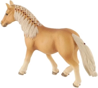 Modelul de cal este creat cu detalii precise, inclusiv coama împletită și coada bogată, aducând un plus de autenticitate.