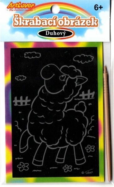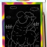 Imaginea conține un strat inferior curcubeu și un stilou de zgâriat din plastic, ceea ce face lucrul cu ea sigur chiar și pentru copiii mai mici.