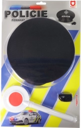 Pregătiți-vă copilul pentru un joc distractiv de-a polițistul cu acest set uimitor, care include șapcă de polițist cu inscripție, țintă de circulație și fluier.