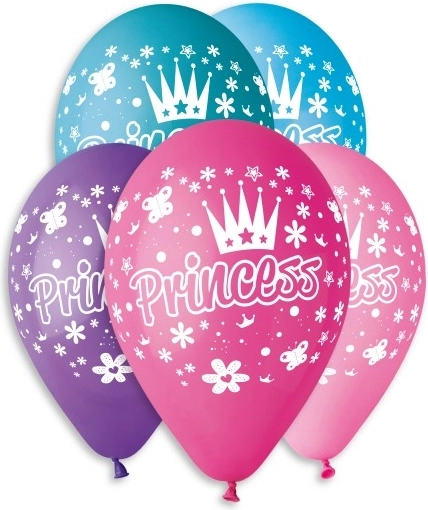 Baloane gonflabile în culori pastelate cu motiv de prințesă și coroană, diametru 30 cm, în set de 5 buc. Decorațiune ideală pentru petreceri pentru copii, aniversări și petreceri tematice. Potrivite de la 3 ani.