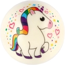 Bucurați-vă de ore întregi de distracție activă cu mingea din spumă decorată cu unicorni veseli. Datorită spumei moi, este delicată cu mâinile și cu mobilierul, în același timp sare bine și se prinde ușor. Mixul de culori și motivele drăguțe susțin bucuria mișcării și a jocului.
