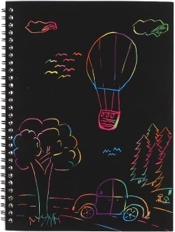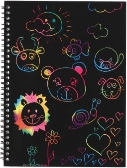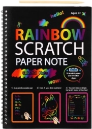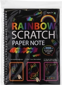 Acest caiet zgâriabil cu fundal curcubeu oferă o modalitate simplă, dar fascinantă, de a crea desene originale. Pe suprafața neagră trebuie doar să zgârii ușor și apar instant culori curcubeu strălucitoare. Excelent pentru micii artiști sau ca activitate relaxantă pentru copiii mai mari.
