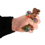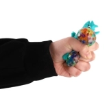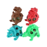Poți strânge dinozaurul în diverse moduri și te vei distra cu el oriunde. La apăsare, din orificii ies biluțe colorate. Dimensiunea dinozaurului: 7 x 5 cm. Potrivit de la 3 ani.