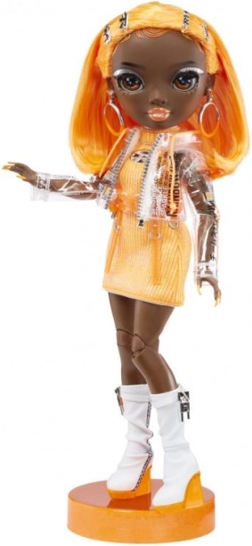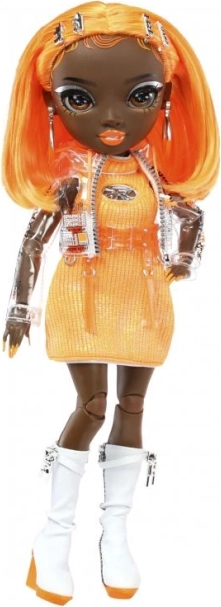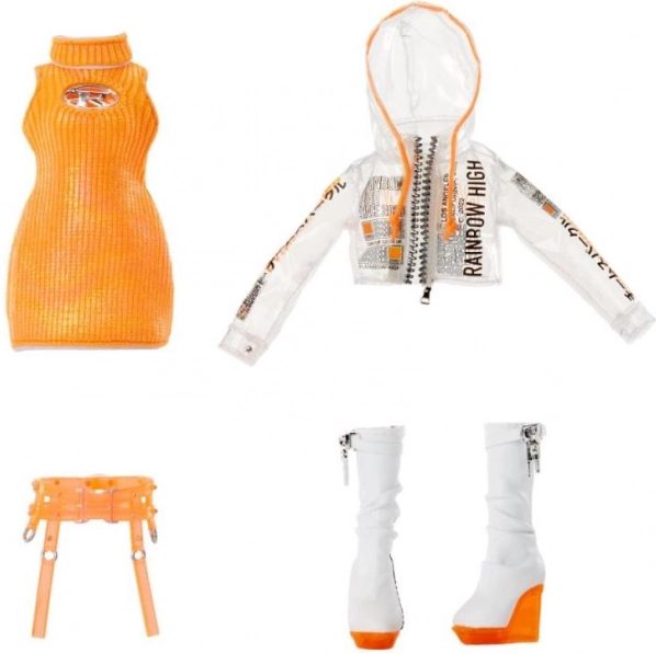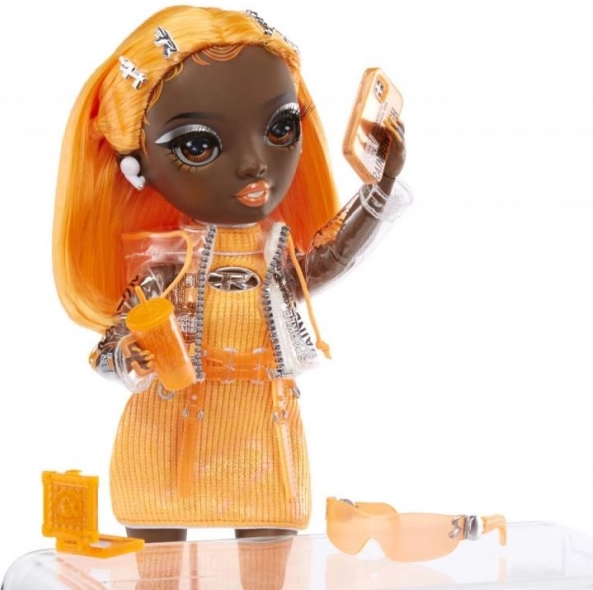 Păpușa este potrivită atât pentru joaca imaginației, cât și ca model pe podiumuri de modă. Aspectul îndrăzneț portocaliu și ținuta unică aduc o experiență estetică și susțin joaca creativă a copiilor. Intrați în lumea Rainbow High și lăsați-vă imaginația să zboare înalt!