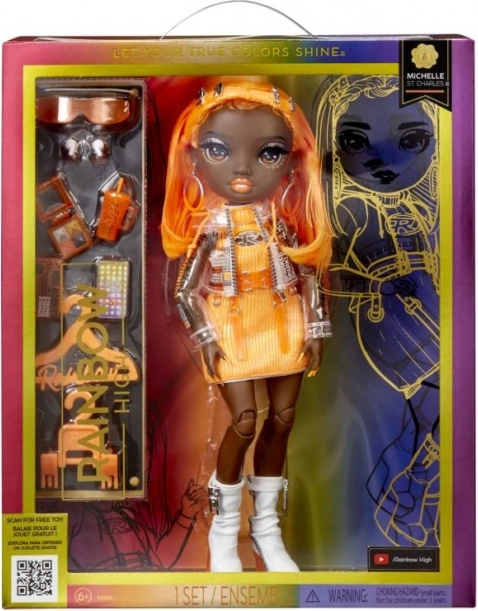 Descoperiți magia păpușii de modă Rainbow High Michelle St. Charles, care este remarcabilă nu doar datorită accesoriilor sale portocalii vii, dar și a ținutei sale stilate. Măsoară aproximativ 22 cm înălțime și este ideală pentru copiii de la 6 ani. Această păpușă nu doar că dezvoltă imaginația, dar este și un cadou excelent datorită ambalajului ei care măsoară 8.1 x 20.3 x 30.5 cm.