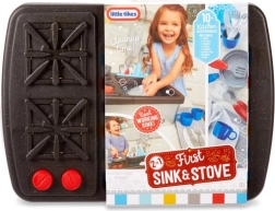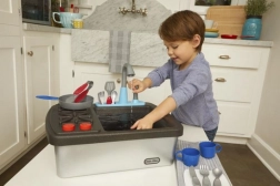 LITTLE TIKES First Sink & Stove aduce distracția realistă din bucătărie direct în camera copiilor. Datorită apei curgătoare cu circulație, butoanelor rotative și echipării bogate, imită gătitul și spălatul vaselor reale. Construcția compactă și durabilă este ideală pentru joaca de zi cu zi.