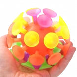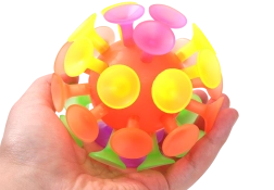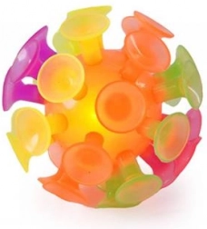 Minge distractivă pentru copii și adulți, cu ventuze care se fixează pe suprafețe netede. La impact, se aprinde automat, asigurând efecte luminoase atractive și și mai multă distracție la joacă, atât în casă, cât și afară.