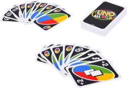 Trăiți un UNO și mai sălbatic! În ediția UNO All Wild! fiecare carte este joker, astfel jocul este rapid, palpitant și imprevizibil. Noile cărți de acțiune schimbă cursul jocului și aduc o mulțime de răsturnări de situație. O opțiune ideală pentru familie și petreceri pentru 2–10 jucători, de la 7 ani.
