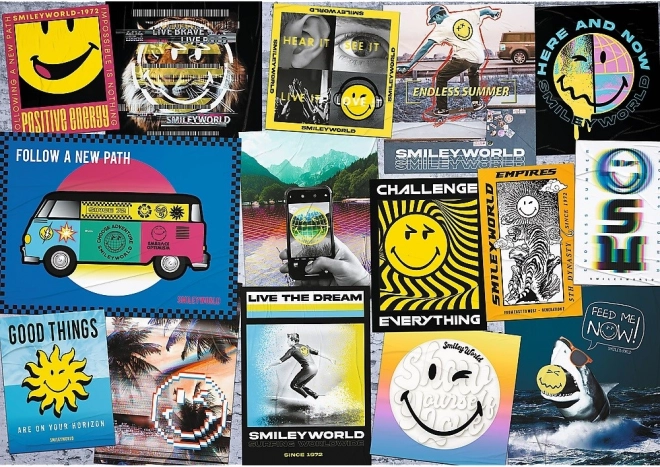 Bucură-te de distracție și voie bună cu un puzzle de 1000 de piese din colecția SMILEY. Colajul colorat al zâmbetului iconic din fotografii și postere aduce energie pozitivă și un relax excelent pentru timpul liber.