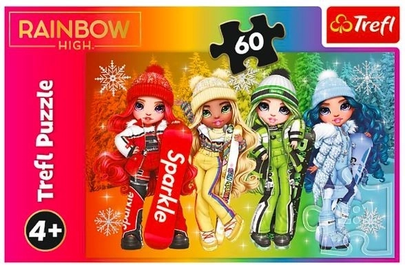 Acest puzzle colorat cu tema îndrăgitei serii RAINBOW HIGH va încânta toți fanii, mici și mari. Setul conține 60 de piese decupate cu precizie, care după asamblare formează o imagine vie cu dimensiunile 330 × 220 mm. Datorită finisajului de calitate, piesele se îmbină bine și rămân stabile.