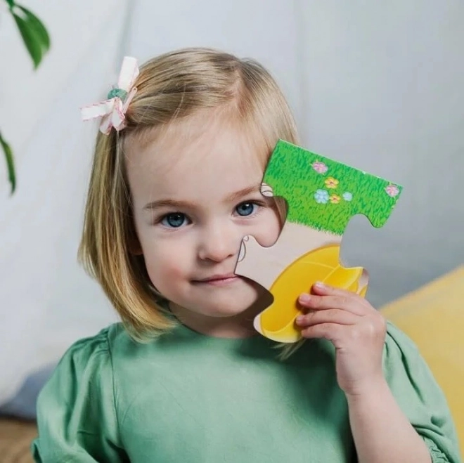 Puzzle mare, față-verso, pentru copii de la 3 ani – ideal pentru cei mici obișnuiți cu mai puține piese. Puzzle-ul este împărțit în 24 de piese mari.