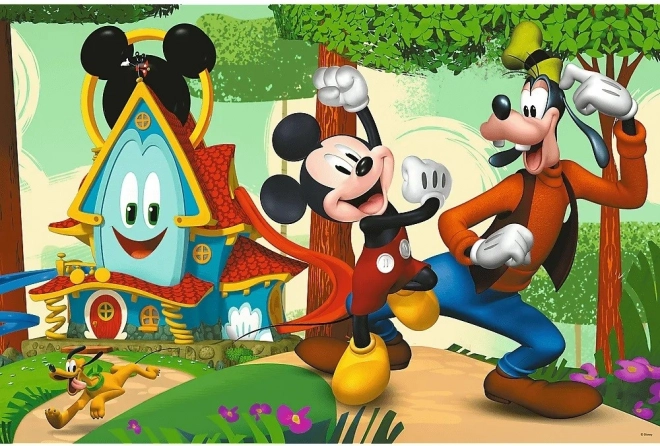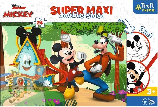 Puzzle Super Maxi 24 Căsuța veselă și prietenii le oferă copiilor o combinație de creație, logică și bucuria rezultatului propriu. Fața prezintă o ilustrație color cu MICKEY și prietenii lui, iar verso surprinde cu o planșă de colorat și un joc isteț cu elemente de colorare – de două ori mai multă distracție într-un singur produs.
