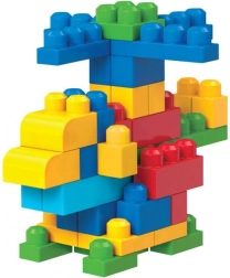 Blocurile Mega Bloks mari, sigure și colorate sunt ideale pentru mâinile mici. Datorită formei și dimensiunii, se îmbină și se desfac cu ușurință, ceea ce îi ajută pe copii să dezvolte răbdarea, coordonarea mână–ochi și imaginația. Sacul practic cu mâner facilitează transportul și depozitarea, astfel încât setul de construcție poate fi oricând gata pentru o nouă aventură.