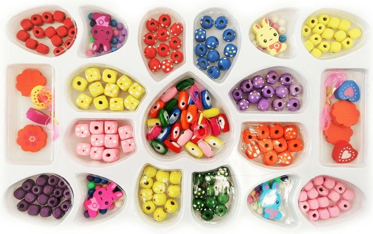 Creează coliere și brățări originale cu setul de mărgele din lemn. Ideal pentru copii și adulți – înșirare ușoară, posibilități nelimitate de design și dezvoltarea creativității și a motricității fine.