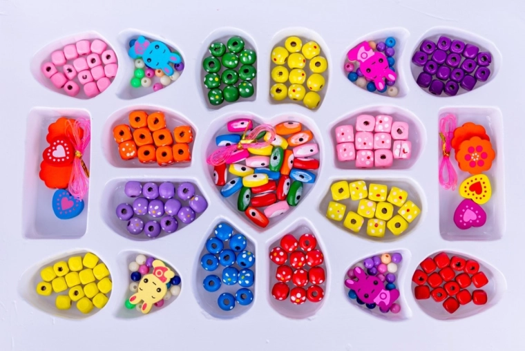- Bijuterii DIY creative – mărgele și elemente decorative pentru înșirare.