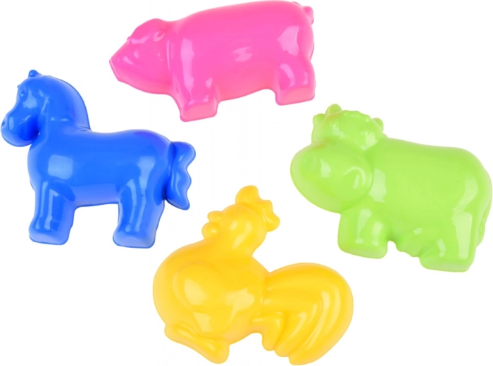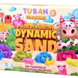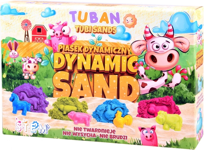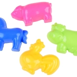 Datorită cutiei cu nisip colorat și formelor variate, copiii pot crea întregi ferme colorate cu animale.