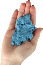 Nisipul dinamic albastru curge plăcut printre degete, își menține foarte bine forma și susține jocul creativ și motricitatea fină.