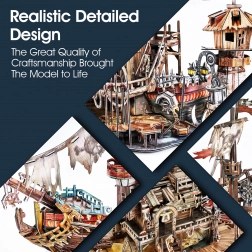 Descoperă farmecul golfului piraților și creează acasă o decorațiune impresionantă cu puzzle-ul 3D Portul piraților Tortuga. Modelul cu dimensiuni de aproximativ 48 × 27 × 38 cm oferă detalii realiste care aduc la viață lumea piraților. Asamblarea se face fără lipici și foarfecă – piesele predecupate se desprind ușor din coală și se îmbină conform instrucțiunilor.