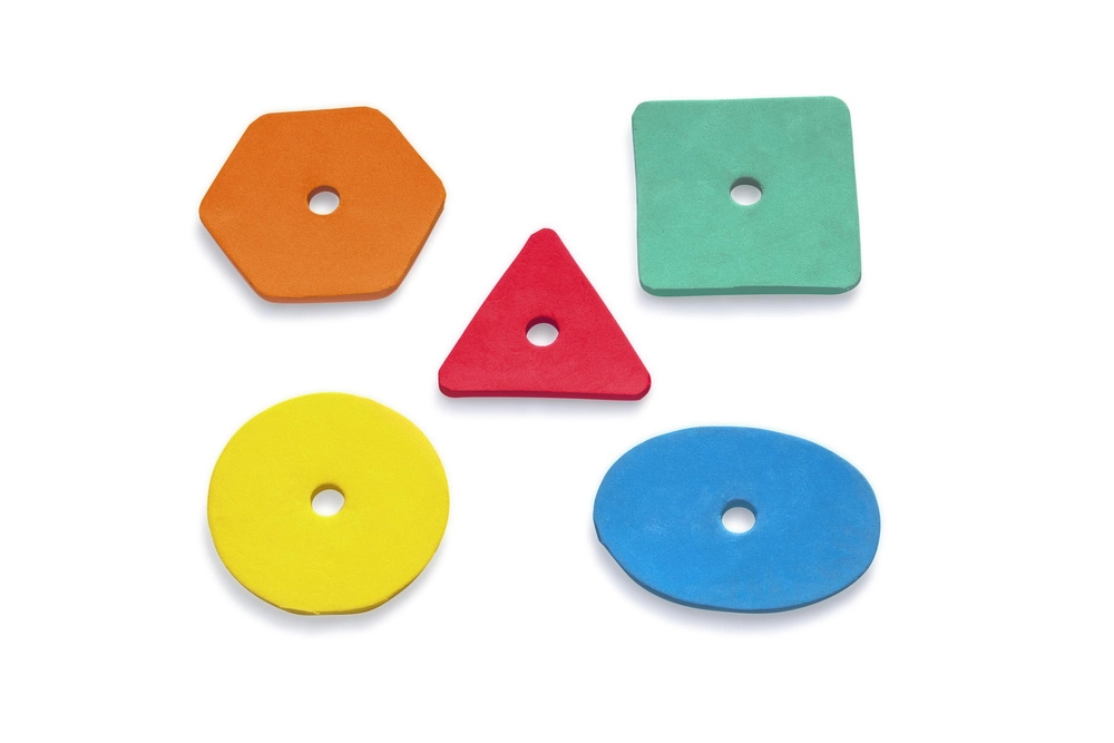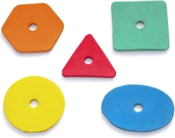 Arcul cu orificii speciale și cele 5 forme din spumă colorate îi ajută pe copii să recunoască culorile și formele și îmbunătățește motricitatea fină și coordonarea.