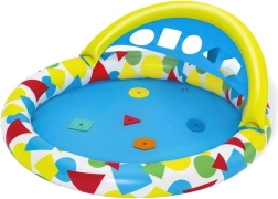 Piscina pentru copii BESTWAY Splash & Learn, distractivă și sigură, combină joaca în apă cu învățarea. Datorită celor cinci forme din spumă colorate și copertinei cu orificii de sortare, copiii exersează culorile și formele, coordonarea și motricitatea fină. Covorașul de apă detașabil (Blobz) oferă un mediu moale și răcoros pentru joacă, atât afară, cât și în interior.