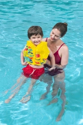 Vestă de înot pentru copii, gonflabilă, ușoară și confortabilă, pentru primele încercări în apă. Oferă 2 camere de aer independente, catarame reglabile și PVC rezistent. Pentru copii 3–6 ani (18–30 kg). Culoarea galbenă intensă asigură vizibilitate excelentă atât la piscină, cât și la mare.