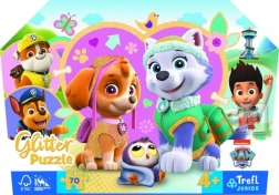 Puzzle-ul drăgălaș cu eroinele SKYE și EVEREST îi va încânta pe toți micii fani PAW PATROL. Datorită sclipiciului auriu fin, piesele și ambalajul strălucesc spectaculos, iar asamblarea devine și mai distractivă. Puzzle-ul este adaptat copiilor și susține motricitatea fină, gândirea logică și imaginația.