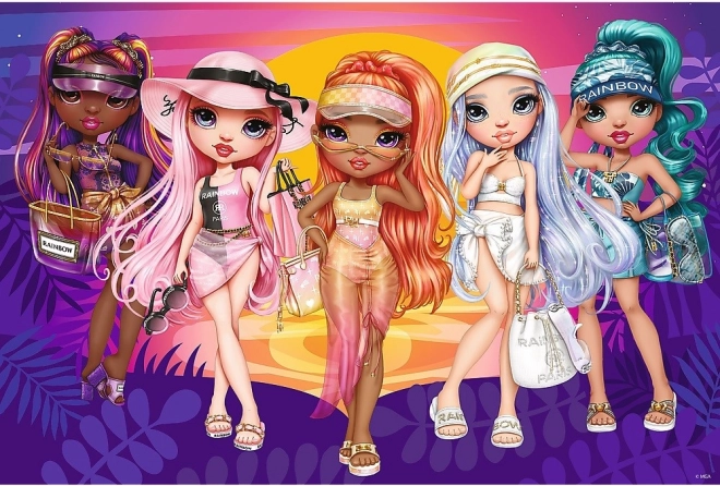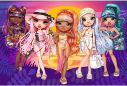 Puzzle-ul sclipitor cu îndrăgitele păpuși RAINBOW HIGH aduce copiilor bucuria creației și un aspect atrăgător datorită brocartului auriu fin. Totul este păstrat într-o valiză rezistentă cu mâner, astfel încât puzzle-ul poate fi luat ușor în călătorii sau la bunici.