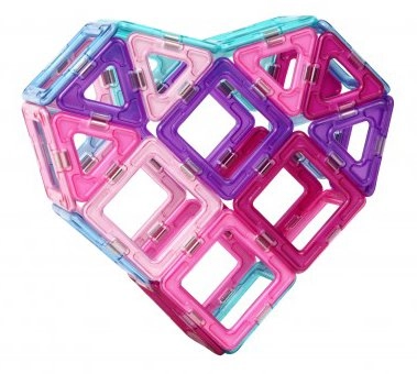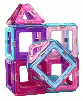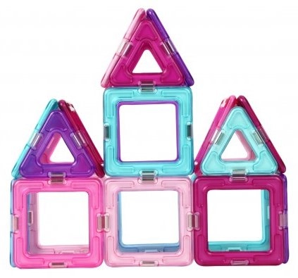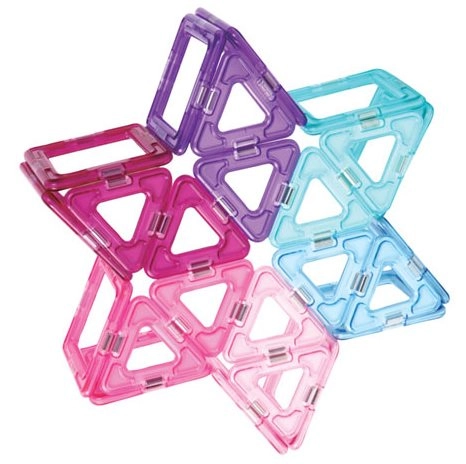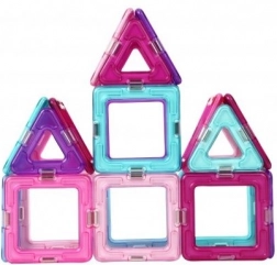 Ediția pastel a îndrăgitului set de construcție include 18 pătrate și 12 triunghiuri în culori semitransparente (roz, mov, turcoaz, albastru). Piesele se conectează prin magneți fiabili pe muchii, astfel încât copiii creează cu ușurință stele, căsuțe, inimi și turnulețe. Setul este ideal pentru primele încercări de construcție și pentru dezvoltarea imaginației spațiale.