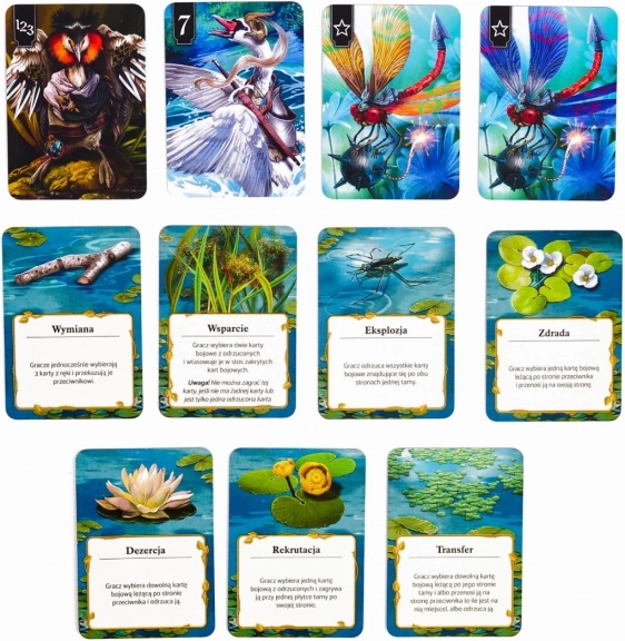 Această ediție cehă a jocului cunoscut "Schotten Totten 2" atrage prin ilustrațiile superbe ale lui Piotr Sokołowski și oferă o experiență tactică profundă. Creează formații cu ajutorul animalelor din râurile poloneze precum stârci, somni sau salamandri și depășește strategiile atacatorilor.