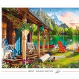 - Motiv superb al unei căsuțe în munți, cu lac, pentru o atmosferă plăcută la asamblare.